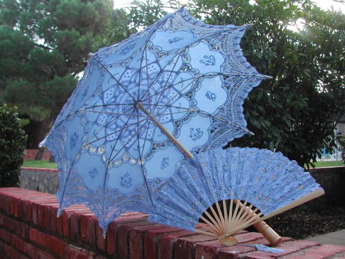 Free Shipping Blue Battenburg Lace Parasol W/lace Fan @ Amazon.com