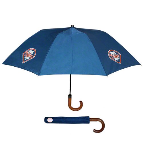 Be prepared to weather the storm with this Philadelphia Phillies Wood Handle Umbrella. This umbrella features a wooden cane handle with the Philadelphia Phillies logo on it. Read more...