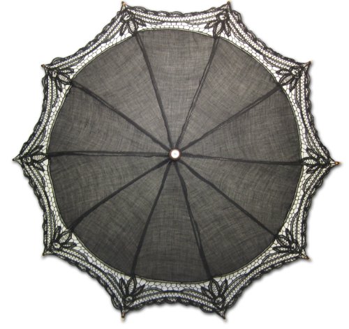 Battenburg Lace Trim Cotton Parasol in Purple, Red, Beige, Black Or White Review