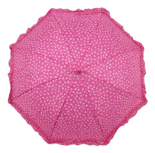 This awesome hot pink mini stick umbrella features a print of pale pink hearts. Measuring 23 inches long including the tip, it opens easily to provide you with 34 inches (arc diameter) of protection from rain, sleet or snow and can also be used to protect you from the harmful effects of the sun. It's great for kids, and makes a great parasol. The handle and tip are hot pink plastic.