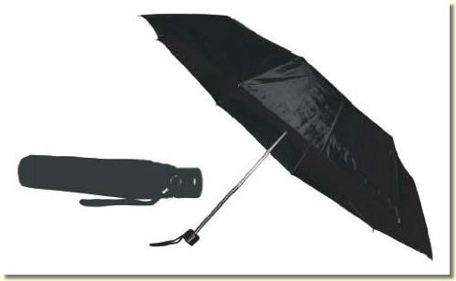 Your basic black compact umbrella. The 38 inch canopy keeps you dry and the compact design lets you keep it in a drawer or large bag 'just in case.' Read more...