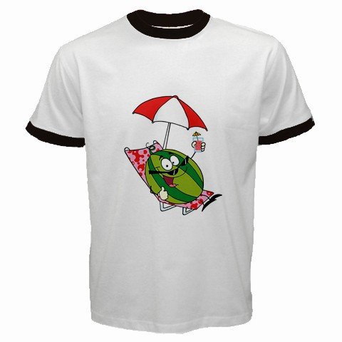Men's Customized TOONS UMBRELLA WATERMELON WATERMELON CHARACTER 100% Cotton White Ringer T-shirt Review