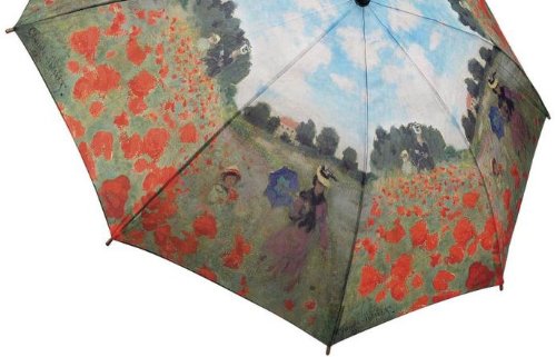 Galleria Umbrella - Monet Poppy FieldThis umbrella will brighten those rainy days!This beautiful umbrella is decorated with the Poppy Field painting by Monet. This umbrella is made with fiberglass ribs and automatically opens with the touch of a button. This item folds down into a mini umbrella and comes in a gift box.Item # 30202This item is brand new with tags attached!The arc is 48 inches. This is an adult size umbrella.International buyers welcome - Please contact seller for details. Read more...
